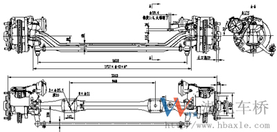 HT30F05前橋總成由工字梁、轉向節總成、氣壓盤式制動器總成、制動盤及輪轂總成、轉向節臂、橫拉桿總成等組成。它具有噪音低、運行平穩、安全系數高、制動性能好等優點.
