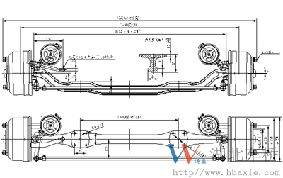 HT30Q09系列前橋總成由工字梁、轉向節總成、“S”凸輪帶滾輪制動器總成、制動鼓及輪轂總成、轉向節臂、橫拉桿總成等組成。HT2W08系列后橋總成由琵琶式鋼板焊接的整體式橋殼,主減速器總成、“S”凸輪帶滾輪制動器總成、制動鼓及輪轂總成、全浮式半軸等件組成。它具有噪音低、運行平穩、安全系數高、制動性能好等優點。