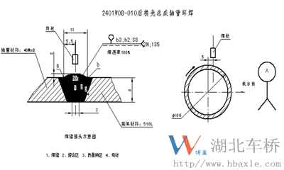 5.軸管與橋殼體材質不一致,環焊前的預熱不均勻,導致焊縫裂紋產生。