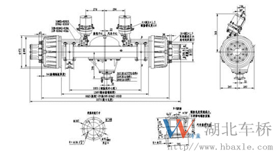 2401N122-010-4.11主減速器總成噪音低,傳遞扭矩大。其突緣端面至橋殼中心線距離為390mm(見如下安裝尺寸圖)。主從動錐齒輪有噪音低、壽命長的特點,其傳遞扭矩30000N.M,裝配成總成后噪音在84dB以下,壽命可達70萬次以上。