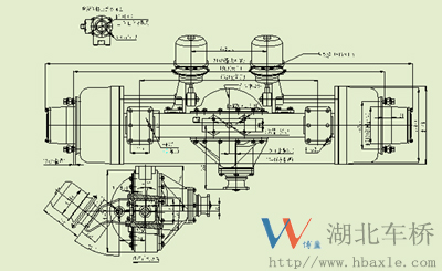 2402F40-010-4.875 主減速器總成噪音低,傳遞扭矩大.主減速器總成,設計突緣端面至橋殼中心線距離為369mm(見如下安裝尺寸圖)。主從動錐齒輪噪音低、壽命長等特點,其傳遞扭矩為24000N.M,配成總成后噪音在86dB以下,壽命可達70萬次以上,深受用戶的好評。