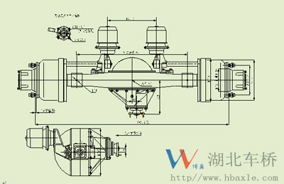 2402B104-0101-4.33主減速器總成,設(shè)計突緣端面至橋殼中心線距離為318mm(見如下安裝尺寸圖)。主、從動錐齒輪是專門針對客車要求噪音低、壽命長等特點,其傳遞扭矩18000N.M,裝配成總成后噪音在84dB以下,壽命可達(dá)70萬次以上,深受用戶的好評。