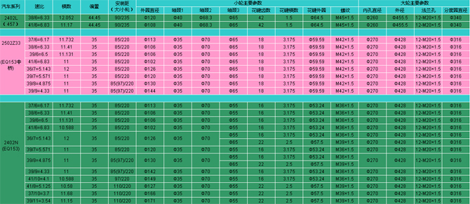 首頁 ? 產品展示 ? 漸縮齒| 汽車系列 | 速比 |