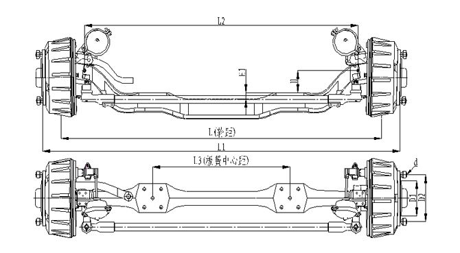 1.前軸為整體鍛造結構,承載能力強;2.采用專用客車制動鼓(帶散熱孔及散熱筋)和摩擦片,具有散熱效果好,使用壽命長的優點;3.車輪輪輞定位方式可采用球面定位或止口定位;4.輪距、板簧距可靈活調整;