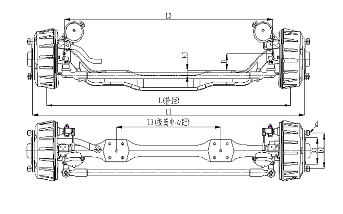 1.前軸為整體鍛造結構,承載能力強;2.采用專用客車制動鼓(帶散熱孔及散熱筋)和摩擦片,具有散熱效果好,使用壽命長的優點;3.車輪輪輞定位方式可采用球面定位或止口定位;4.輪距、板簧距可靈活調整;